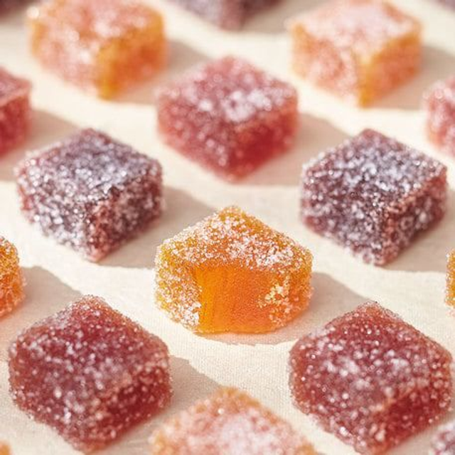 18 pâtes de fruits bio à la framboise, à la fraise et à l'abricot (180g).